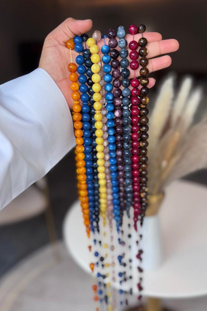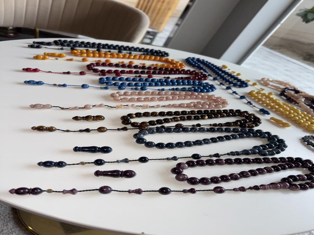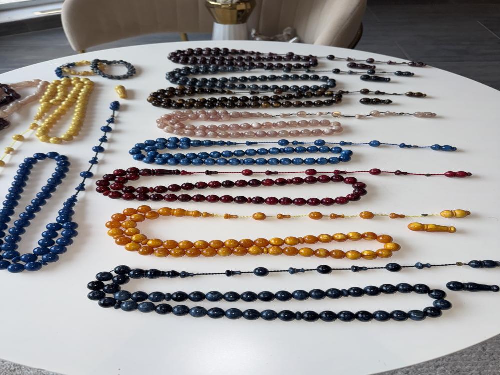 بكج عشر مسابيح فاتوران تركي خراطة ورشة الخالد45 خرزة12 ملييجي مع كل مسباح شاهد وغطاء سبيرماعادا التوتي والازرق مموج